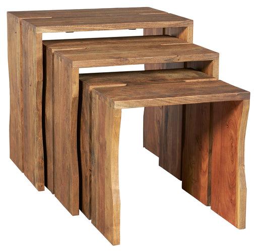 28731Nesting tables consisting of three tables made of solid Acacia with exposed dovetail joinery Solid Mango wood Natural wood finish