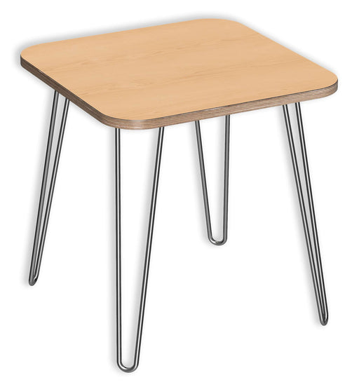 991060DTEnhance your office with this stylish end table. The square DesignerPly top is modernized with mid-century multi-ply grain edges and four hairpin l...