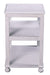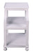 - Rectangular chairside table with open storage.