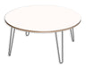 Center your living room around this stunning DesignerPly coffeetable. The circular top is modernized with mid-century multi-ply grain edges andfour hairpin legs. With our waterproof DesignerPly tops, you’ll no longer haveto worry about setting your drink down without a coaster. The steel hairpinlegs come in a chrome finish, and the durable high-pressure laminate top has aDesigner White finish. This end table with mid-century modern hairpin legs is achic nod to the past but feels fresh in any living space. In addition, thistable requires minimal assembly with the DesignerPly top and hairpin legsattaching in a few easy steps.