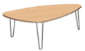 Center your living room around this stunning DesignerPly coffeetable. The triangular top is modernized with mid-century multi-ply grain edges andthree hairpin legs. Curved corners make it easy to move around without worryingabout hitting your leg on a sharp corner. With our waterproof DesignerPly tops,you’ll no longer have to worry about setting your drink down without a coaster.The steel hairpin legs come in a chrome finish, and the durable high-pressurelaminate top has a Natural Maple finish. This end table with mid-century modernhairpin legs is a chic nod to the past but feels fresh in any living space. Inaddition, this table requires minimal assembly with the DesignerPly top andhairpin legs attaching in a few easy steps.