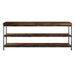 - Supported on square legs of 3/4" iron with natural textures and color of forged metal.