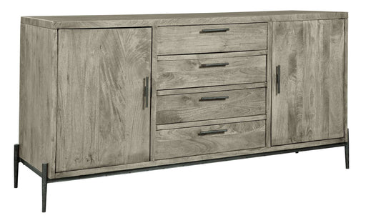 25626This buffet has ample storage with three drawers and four doors, with one adjustable shelf behind each pair of doors. Mindi Solids and Veneers wit...