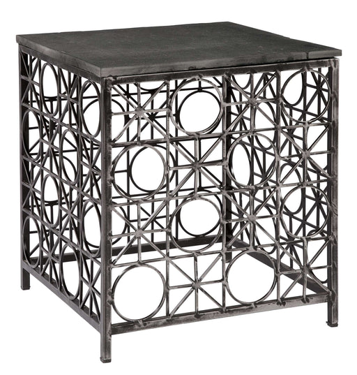 28547Cast metal square block side table features a roughened surface. Dark nickel finish.