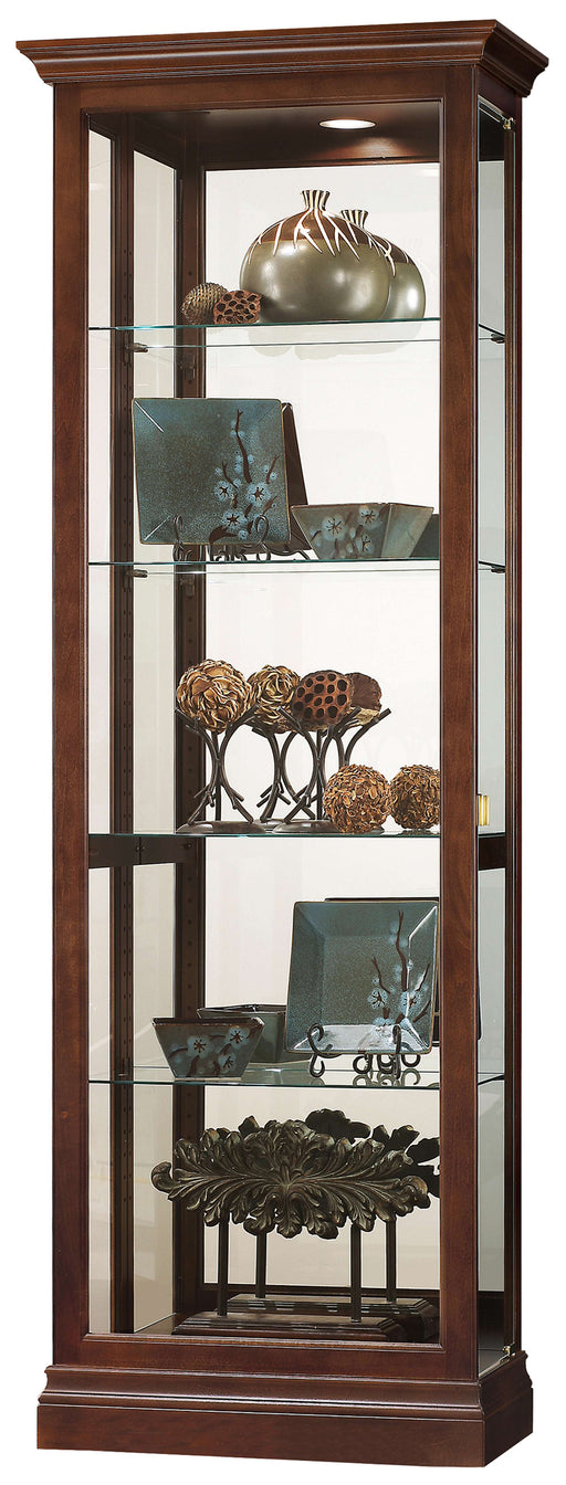 680640The Howard Miller Tyler V curio cabinet adds beauty and elegance to any space. Proudly place your items on display in this premium lighted curio ca...