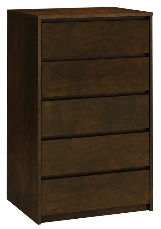 24361Chest features a 1.5" thick slab top. Five drawers with self-closing undermount slides. Metal feet of tapered angle iron with the natural text...