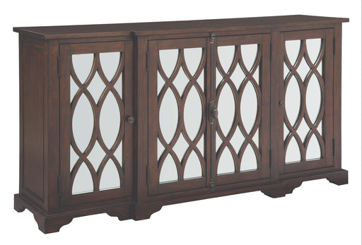 28533• Select veneers and solids. • Four door storage with four glass doors with decorative circular frets. • Adjustable shelf behind each pair of doo...