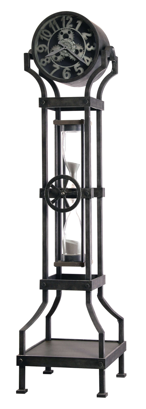 615074Place the Hourglass metal grandfather clock in any room for a bold conversation starter. This steampunk-inspired timepiece has a sand-filled hourgl...