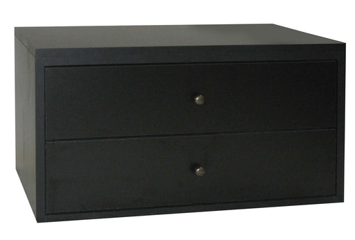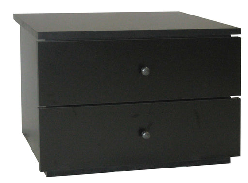 C1071Features & Benefits Black melamine finish Standard with iron-finished knobs Two drawers with steel ball-bearing drawer slides Ships installed...