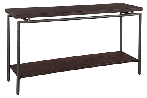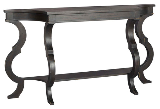 25607This sofa table has three shelves supported by tapered posts with collars. Mindi Solids and Veneers with a Linwood finish.