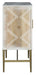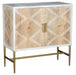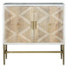 - Accent two-door chest with carved wood doors in a diamond-shaped pattern.