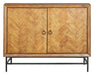 Elevate your home decor with this exquisite Hekman Accent Chest featuring captivating Herringbone patterned doors. With one shelf thoughtfully placed behind each door, this piece offers both style and functionality. Crafted from the finest Mindi wood and finished with a rich Bedford finish, it exudes a timeless elegance that will complement any interior. The Aged Gray metal finish adds a touch of rustic charm, making this chest a perfect addition to any space seeking a blend of modern sophistication and vintage allure. Discover the perfect balance of form and function with our Herringbone Accent Chest.