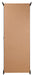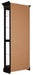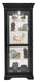 - The front door features decorative molding and slides in both directions for convenient access to the shelves.