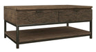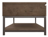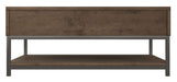 Experience the essence of organic living with our stunning Organic Living Two-Drawer Coffee Table. It is adorned with flowing irregular reeded carving across the drawer face and exudes artistic charm. The hand-hewn solid panels, including the slab top and shelf, ensure durability and a timeless appeal. The Organic Living finish showcases earthen tones of mossy green, brown, and black, beautifully rubbed into the generous reeded and hand-hewn details of the Solid Mango wood. Removable wheels can be attached to the bottom shelf's underside, allowing easy mobility. The 1" square tube metal accents, finished in Burnished Nickel, and the 3.5" tab pulls complete the modern aesthetic. Elevate your living space with this captivating and functional coffee table.