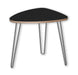 Enhance your office with this stylish end table. The triangular DesignerPlytop is modernized with mid-century multi-ply grain edges and three hairpinlegs. Curved corners make it easy to move around without worrying about hittingyour leg on a sharp corner. With our waterproof DesignerPly tops, you’ll nolonger have to worry about setting your drink down without a coaster. Thesteel hairpin legs come in a chrome finish, and the durable high-pressurelaminate top has a Matte Black finish. This end table with mid-century modernhairpin legs is a chic nod to the past but feels fresh in any living space. Inaddition, this table requires minimal assembly with the DesignerPly top andhairpin legs attaching in a few easy steps.