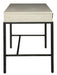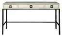 • Three drawers that include two sides drawers and a center drawer with a drop-down front for keyboard storage.