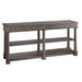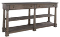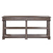 Select solids and veneers. Two drawers and two shelves. Antique brass hardware. Lincoln Park finish.Some assembly required. Width 72" (183 cm) Depth 14" 36 cm) Height 36" (91 cm)