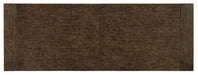 - Dining table with a 1-1/2" top of oak veneer and mindi solids supported on four carved bulbous pedestals mounted to a trestle base.