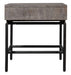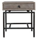 • Drawer box and drawer front comprised of solid mango is supported by a structure of round iron legs with iron stretchers.