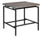 - End table featuring solid mango slab top supported by a structure of round iron legs with iron stretchers.