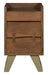 - Drawer faces made of pieces of solid acacia and held together with decorative splines.